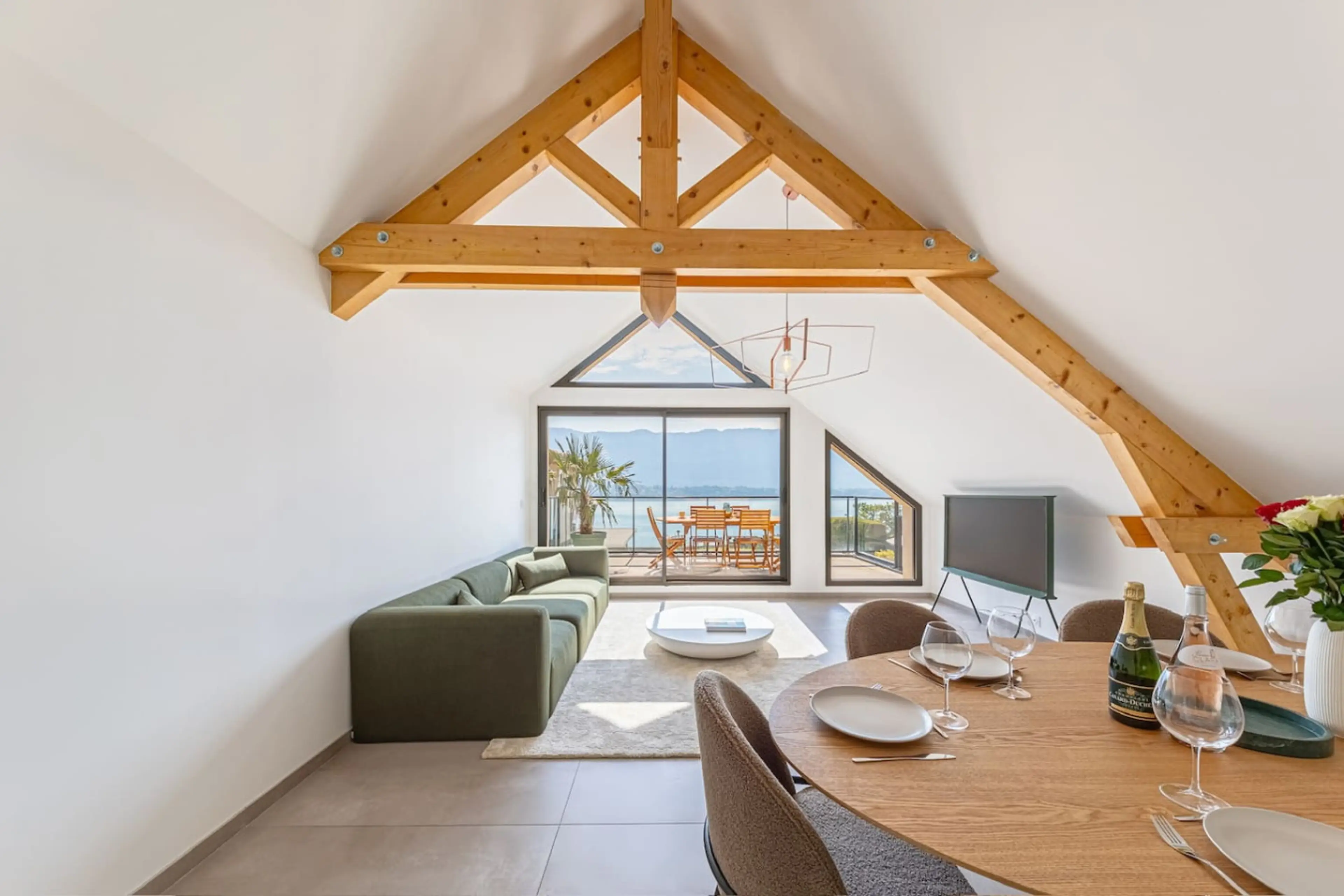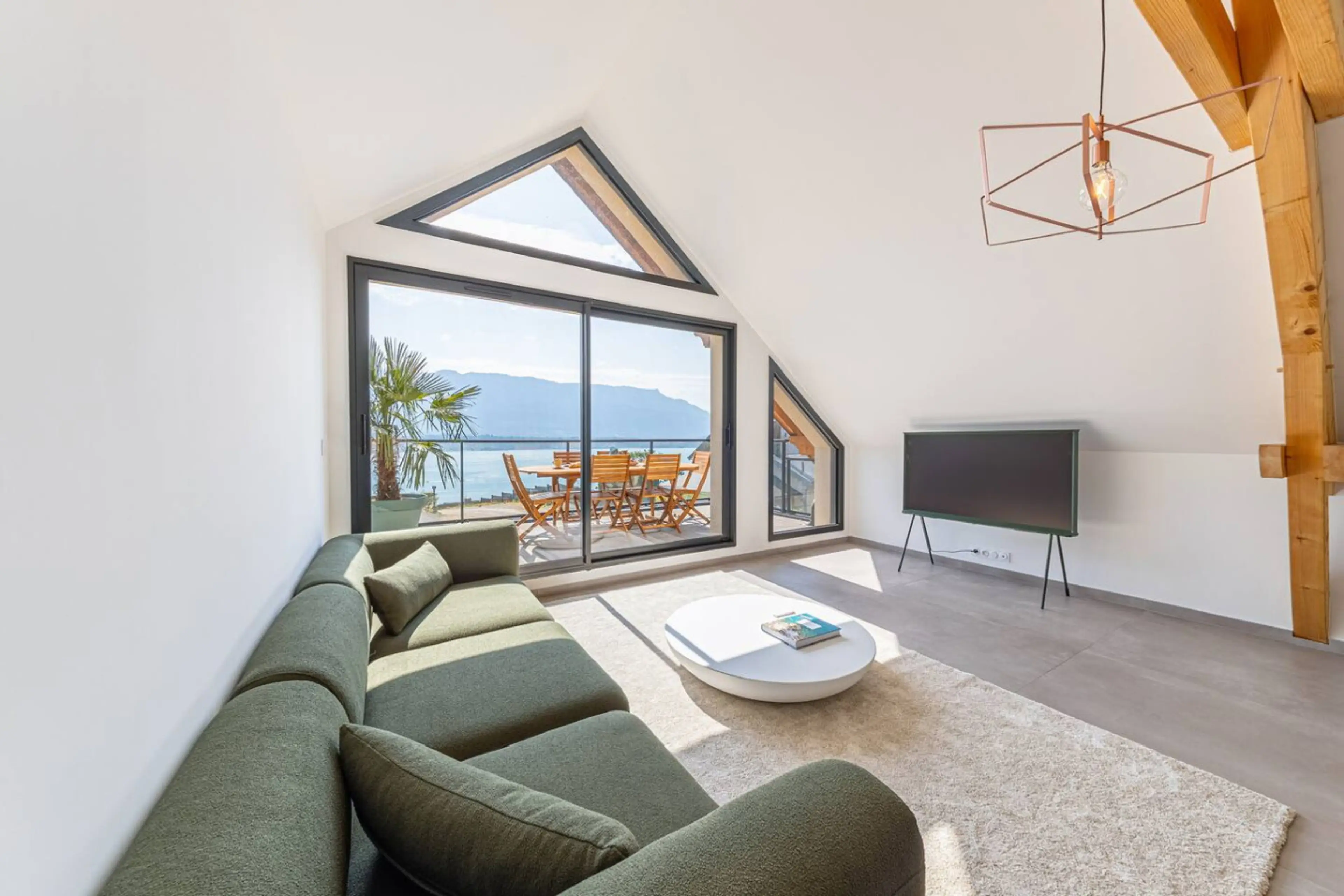 Villa Azura est une villa neuve à Bourdeau, avec une vue exceptionnelle sur le Lac du Bourget. Elle offre 3 chambres avec salles de bain privatives, une pièce à vivre lumineuse et une grande terrasse face au lac. Meublée avec soin, elle allie confort moderne et élégance décontractée pour un séjour p...