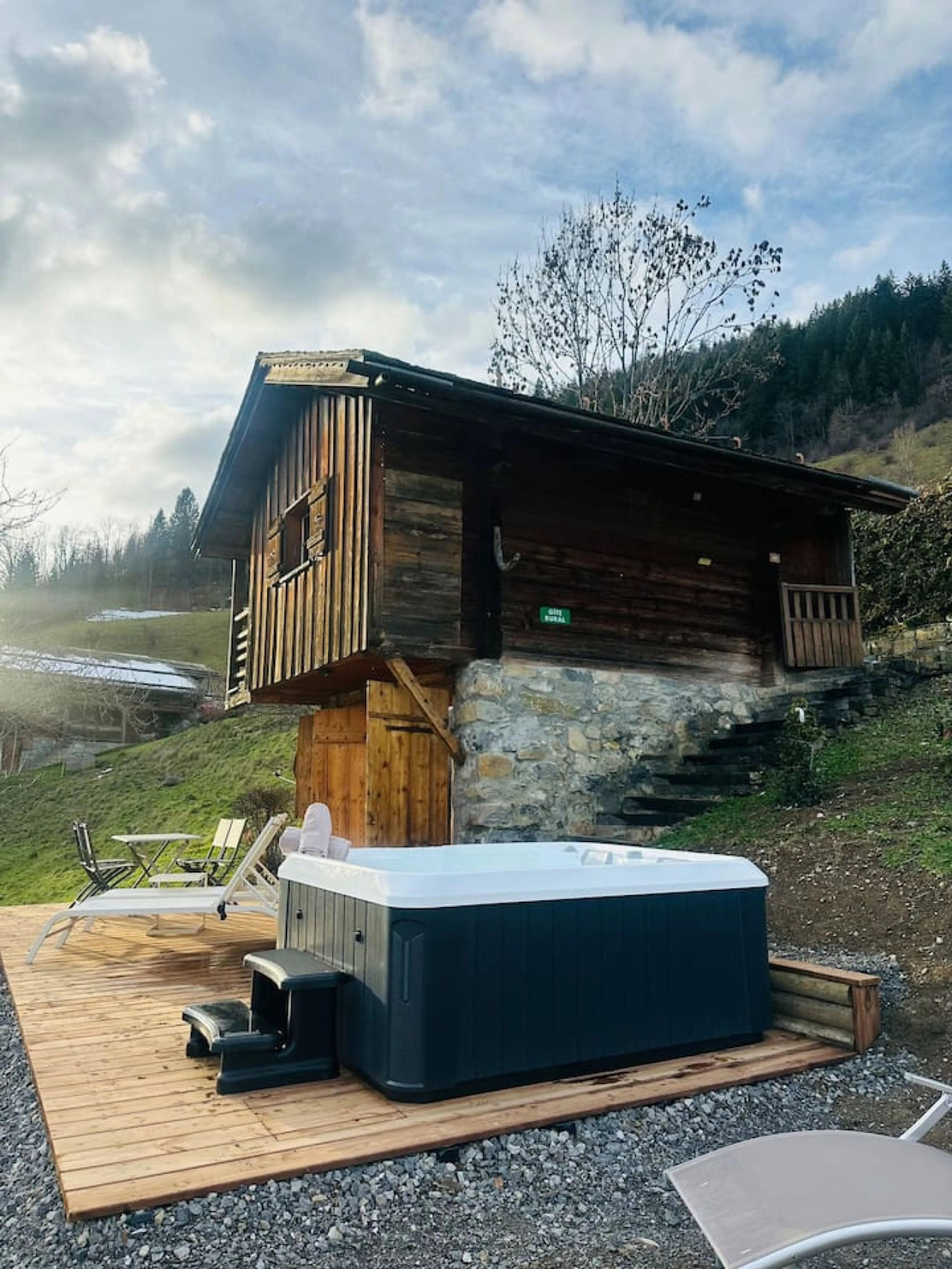 Mazot cosy pour 2 personnes avec jacuzzi privatif et vue exceptionnelle sur la chaîne des Aravis. Un cocon unique, idéal pour une escapade romantique au Grand-Bornand. Profitez du spa en plein air, du calme et d’un panorama à couper le souffle, été comme hiver.